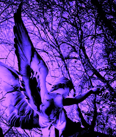 Landing, like great eagles in the branches of the vortex tree, are the seven foot tall blue celestial angels I met in Italy.