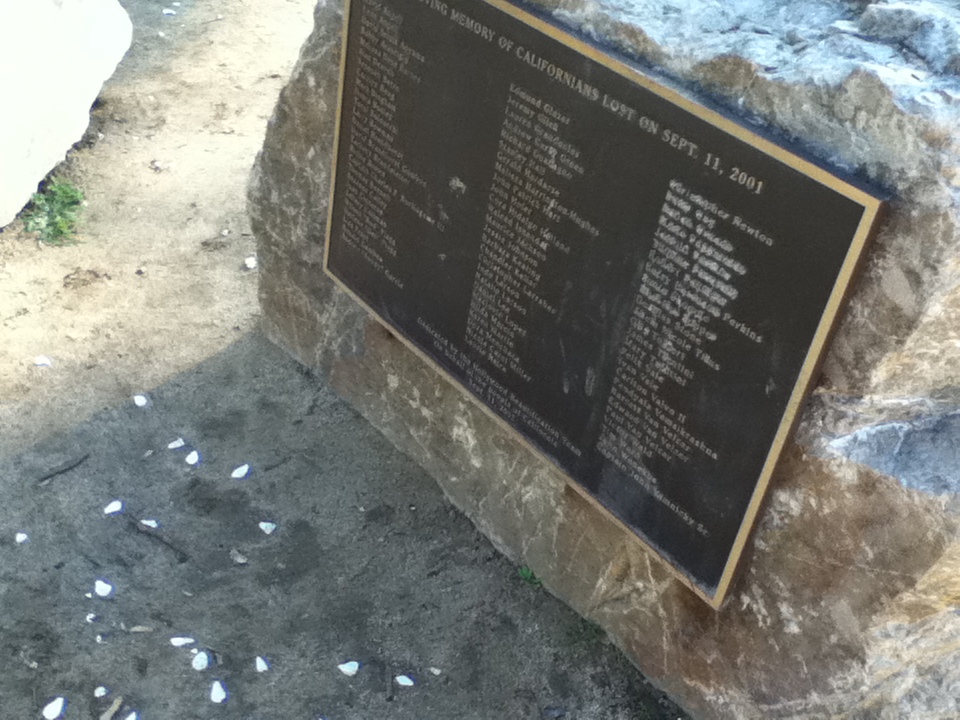 Gazing through my tears over the tarnished bronze list of lost Californians I see the top two names at the head of the list are David and Lynn Angell. Now I weep in earnest, not just from sadness and amazement, but from gratitude that I was guided by higher powers to pick the right spot and date for the work of a bringing about a gentle 2012.