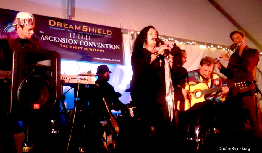 Despite predictions of poor weather, THE 11.11.11 ASCENSION CONVENTION took place as planned at RANCHO DE LAS PALMAS, sponsored by EARTH SHIFT PRODUCTS at tropical retreat Rancho De Las Palmas. Event Director Laura De Leon, with a little help from Ken Sheetz introducing her to Philippo Franchini and Renato Longato, did a masterful job crafting together a FULL DAY and EVENING of Galactic Speakers, Live Music, FREE Workshops, Exhibitors, Vegetarian Vendors, Yoga, Meditations, Ceremony and followed by a POWERFUL ACTIVATION 11:11 PM for DreamShield.org