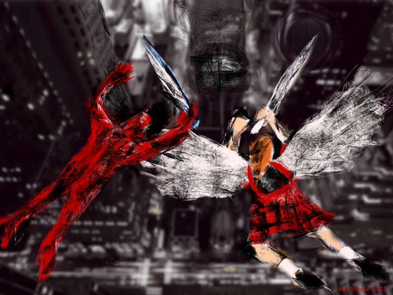 “The angels laugh at you, Ken.  You know that.  Screw the angels.  Be rich and powerful again.  Serve the true power of this world, corporations.  Corporations that loved you, made you rich once, and will make you rich again if you but serve them!”