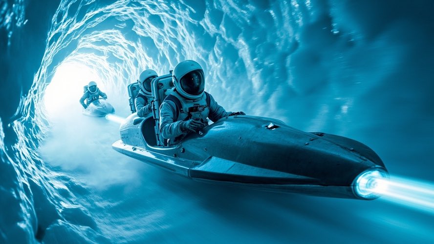 A precise PHASER BEAM carves a glowing TUNNEL THROUGH THE ICEBERG.