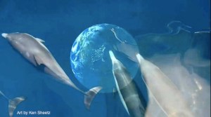 “Gaia,” said Ohom taking Gaia’s hand, “We have been friends through millions of my lifetimes in lower form on your world. And aside from my home world of Nektar, your earth is my favorite place to reincarnate. I am one of your dolphins, besides my human form of Ken, and I can tell you we as species will not appreciate you killing our brother and sister humans.” Ohom shifted to a combination of his ET self and dolphin self.