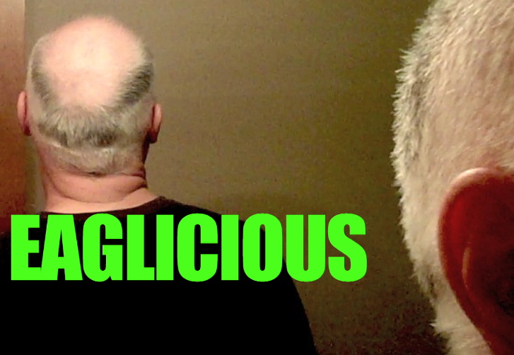 The ladies had me turn on the minivan’s dome light to show them the eagle made of hair. Their giggles prompted me to add. “I’m eaglicious!”